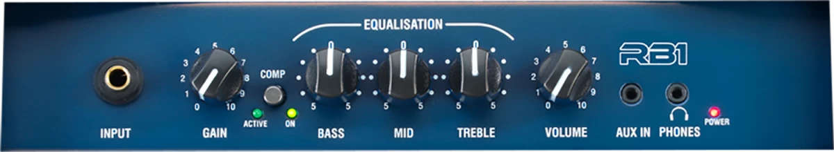 The RB1 is a super compact bass combo housing a custom designed 8″ driver but don’t let that fool you – it delivers a punchy 15 watts RMS of solid bass tone. The preamp features a powerful three band EQ, an on-board compressor and an internal limiter along with a mini jack headphone socket and mini input jack allowing connection of a media player to jam along with your favourite tracks. The RB1 features a dual-position cabinet design so can be used as a conventional stage combo or in ‘kickback’ position as a monitor.