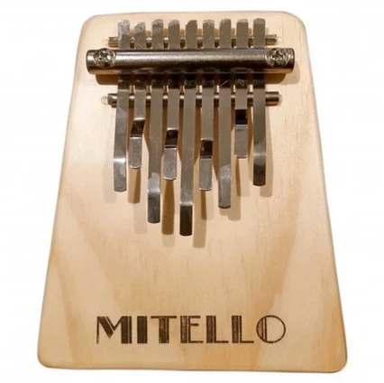 Kalimba. Solid wood construction with 9 plated steel keys. Wide nibs for easy playing and strong controlled sound. Notes: A4, C5, C4, A4, A3, F4, E4, E5, B4
