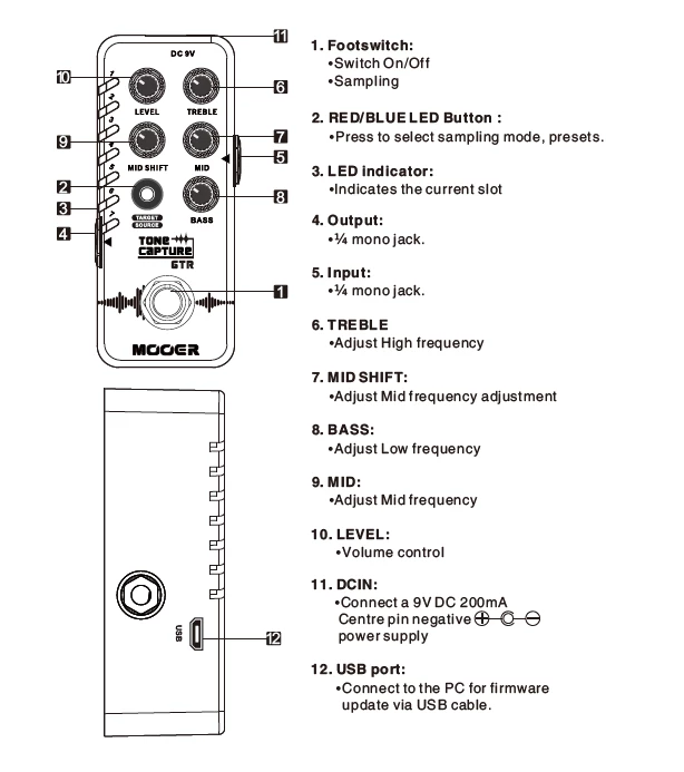 Power supply: 9V DC transformer (internal negative external), MOOER Micro Power is recommended