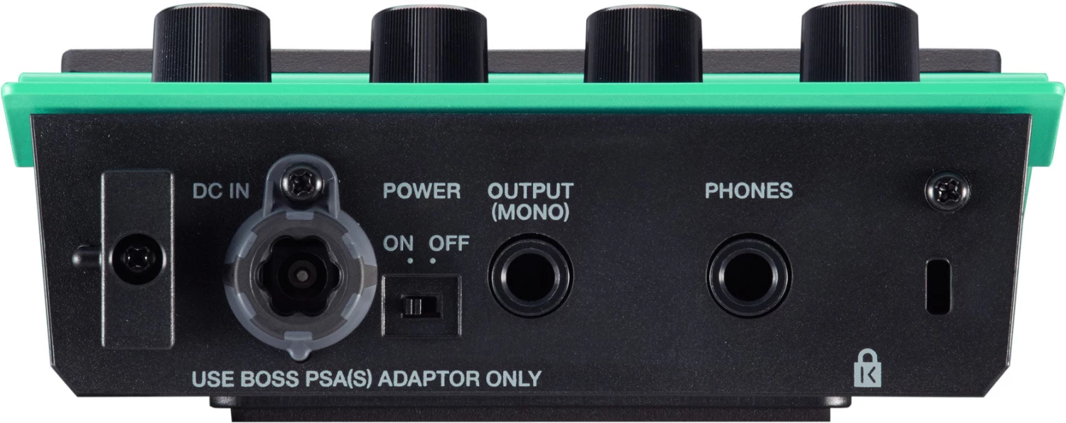 - Main output (mono) and headphones output (stereo) for monitoring