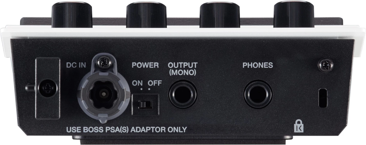 - Main output (mono) and headphones output (stereo) for monitoring
