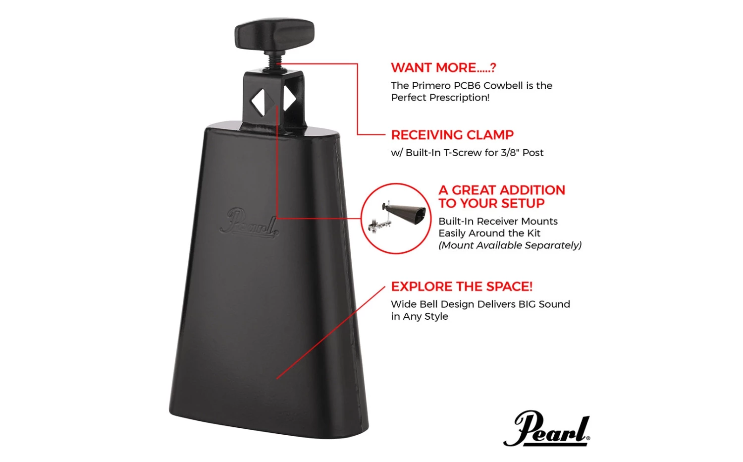 All Pearl cowbells come with a self-adhesive rubber mute if you need to control the volume. The bell’s mounting bracket accepts a 3/8” post.