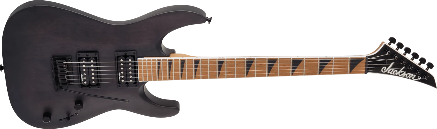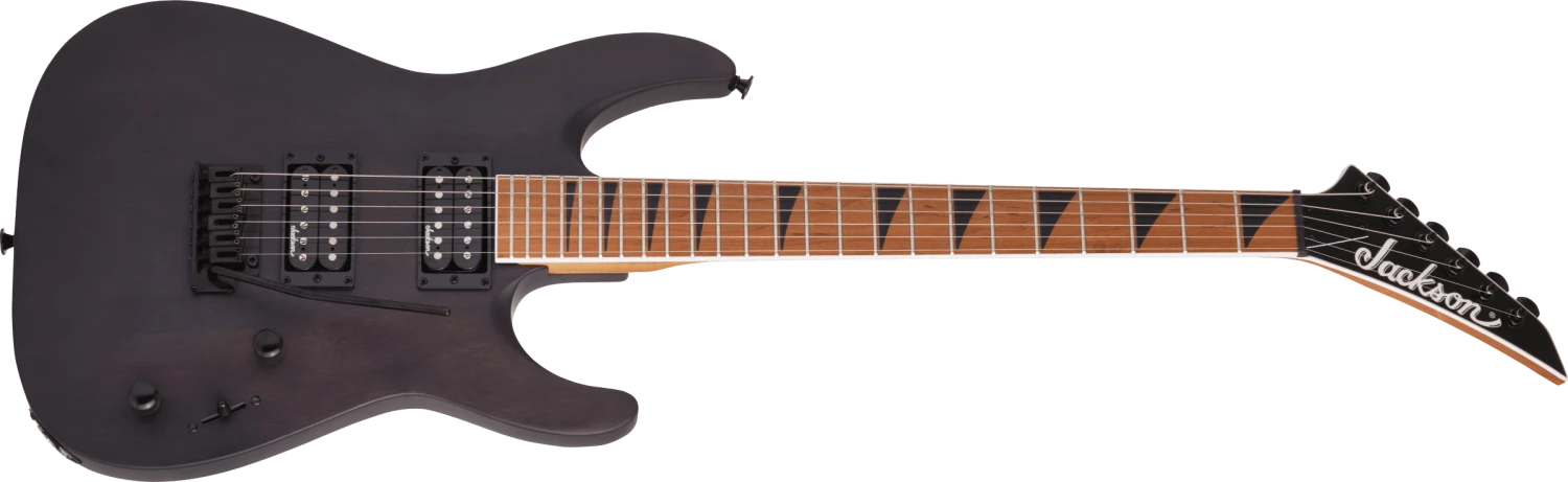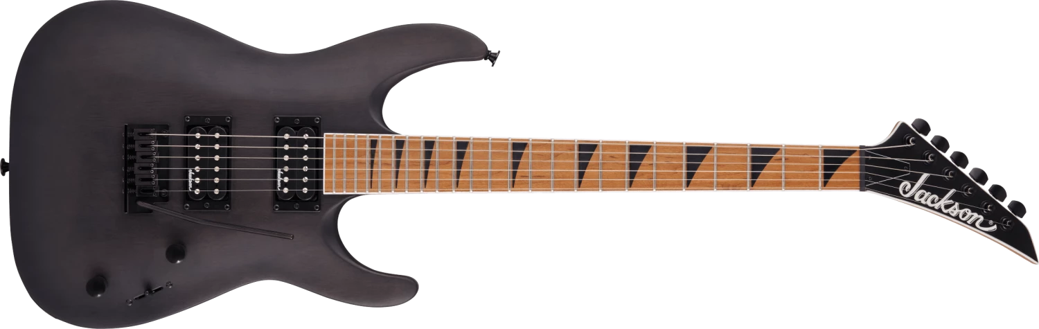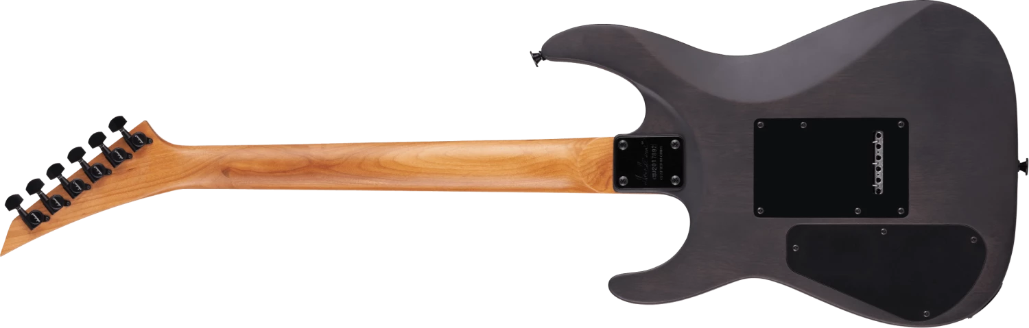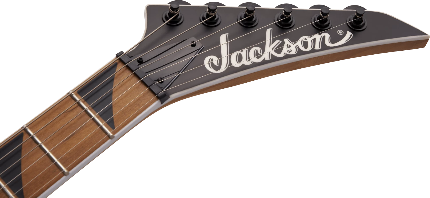 Other features include dual Jackson high-output humbucking pickups with ceramic magnets and three-way pickup blade switching, single volume and tone controls, synchronized fulcrum tremolo bridge, standard strap buttons and die-cast tuners.