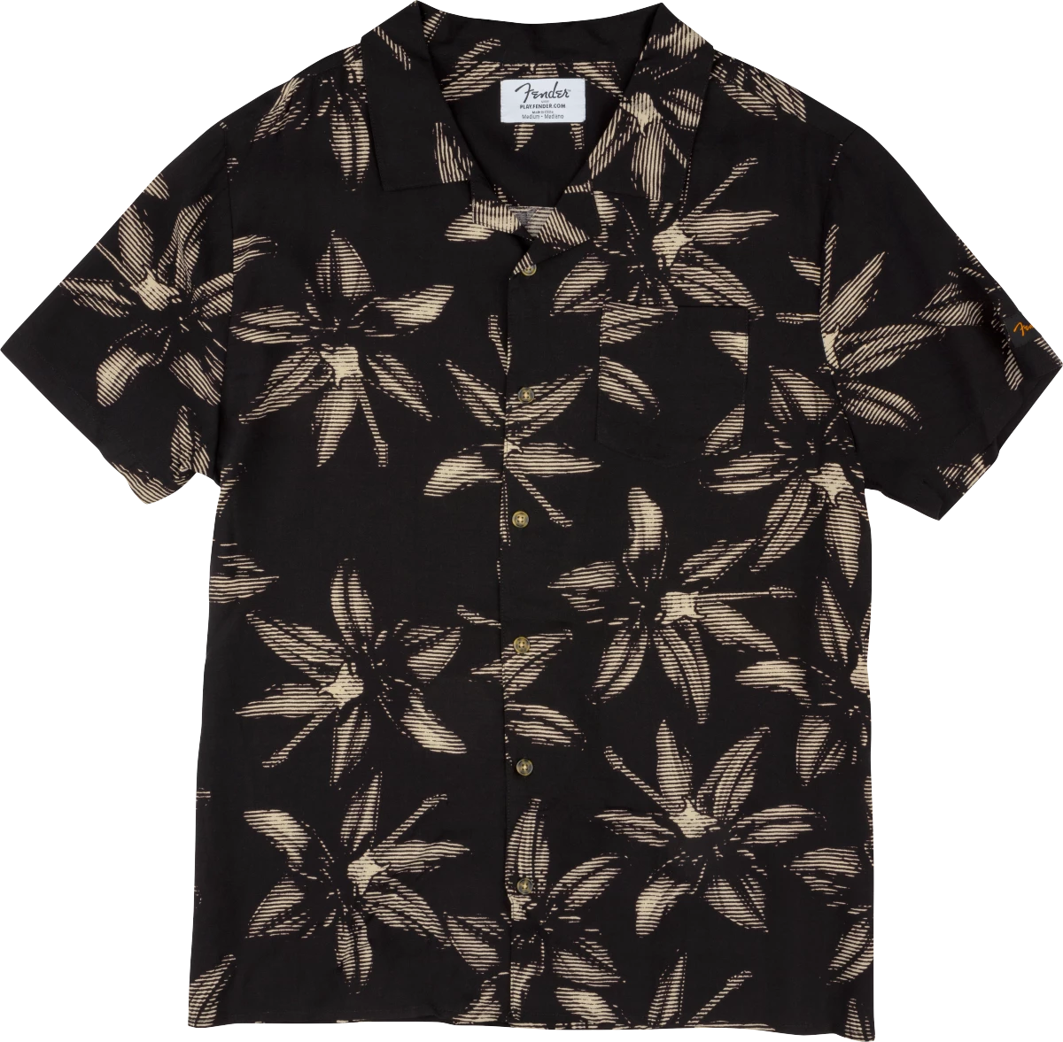 Stay Cool in this modern fit button down shirt featuring a tropical Strat Flower print. This Rayon shirt will go great for any occasion, day or night. Featuring an orange Fender® logo woven label on the left sleeve, you’re definitely going to have the best shirt in the room.