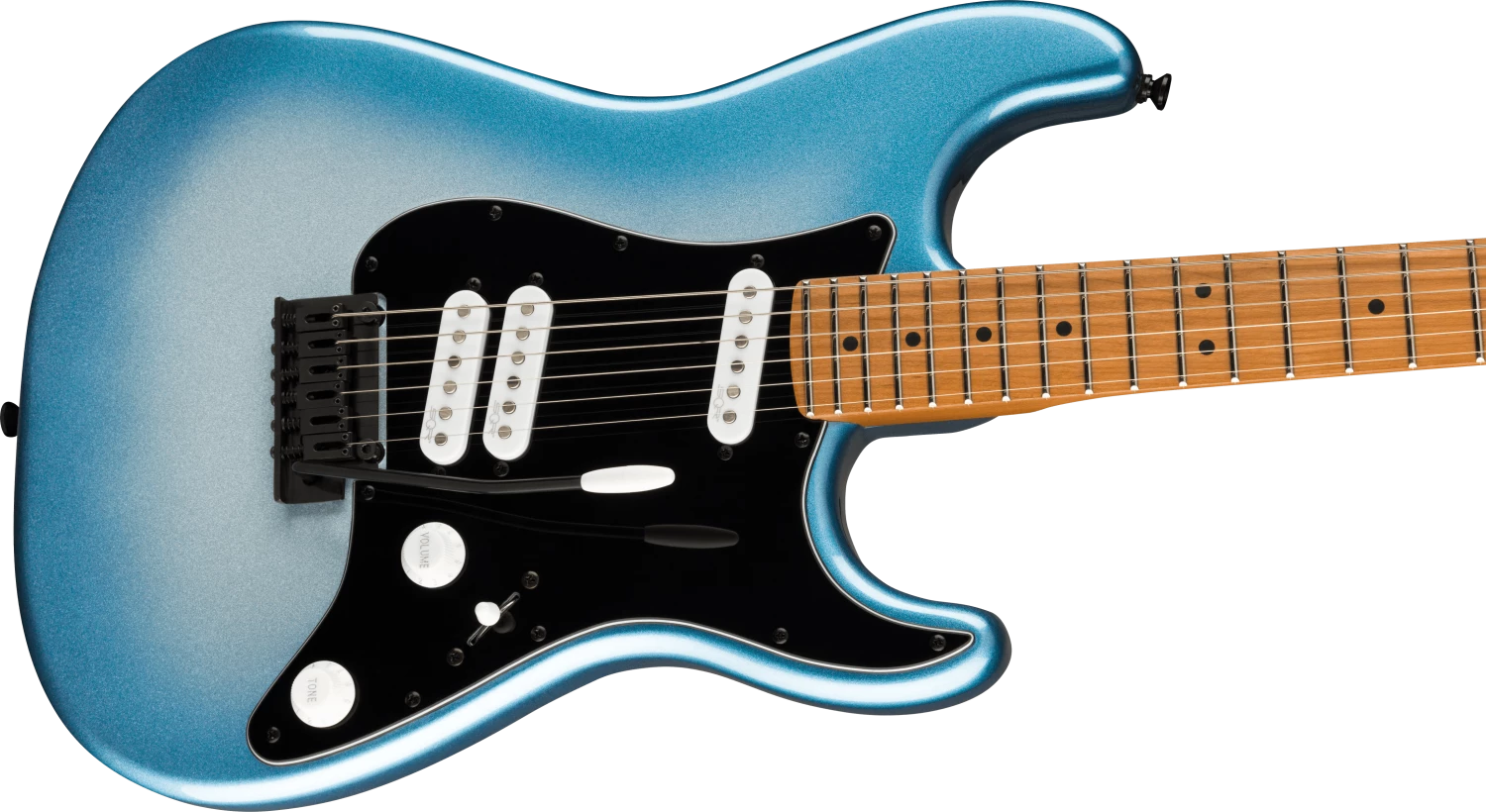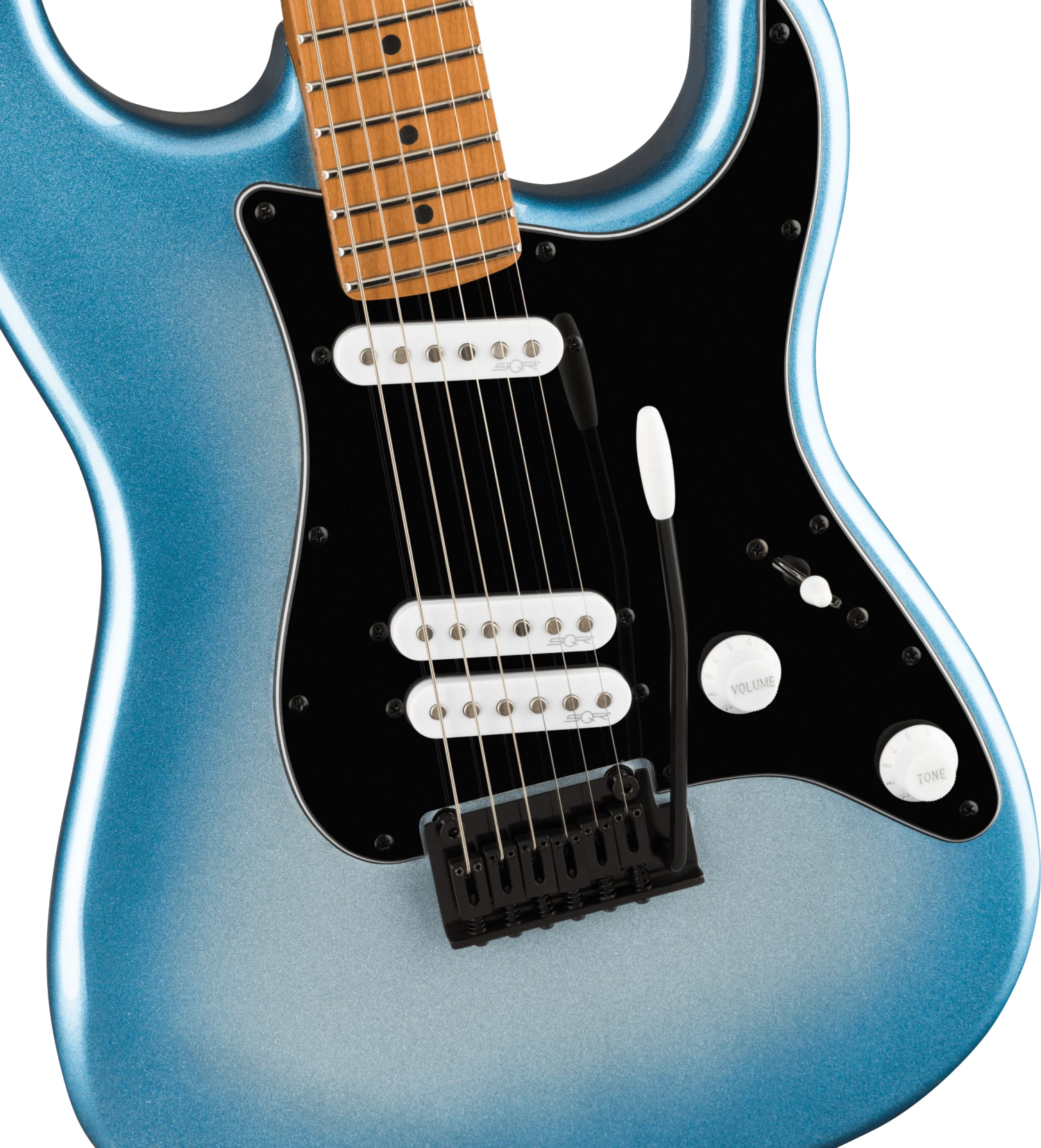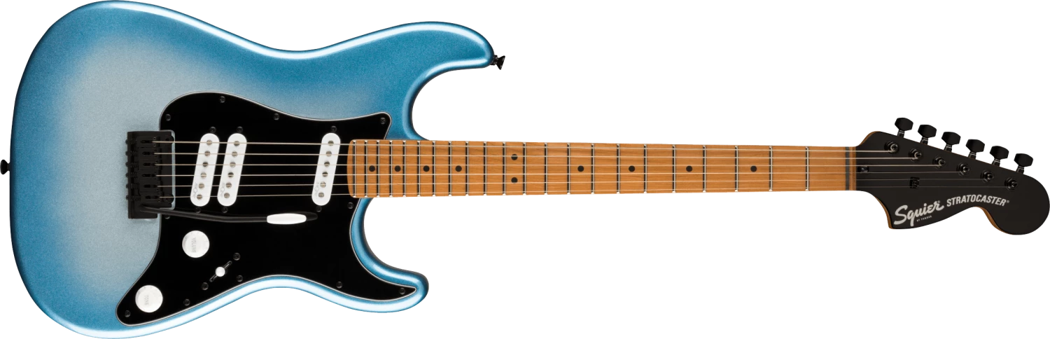 The Squier® Contemporary Stratocaster® Special brings modern features and bold aesthetics to an iconic Fender platform to satisfy today’s most discerning and daring players. At the heart of this guitar is a set of Squier SQR™ alnico single-coil pickups positioned in a “special” configuration with the middle pickup near the bridge pickup for a unique variety of dynamically responsive settings. The roasted maple neck was chosen for its optimal tone and stability, and a sculpted heel design allows for improved access all the way to the 22nd fret. High-performance components round out the feature list and include a 2-point tremolo bridge for superior feel during bends, and a set of sealed-gear tuning machines with split shafts for smooth tuning action and easy restringing. Eye-catching styling cues include stealthy black hardware and a sleek painted headstock with chrome logos for a premium look.