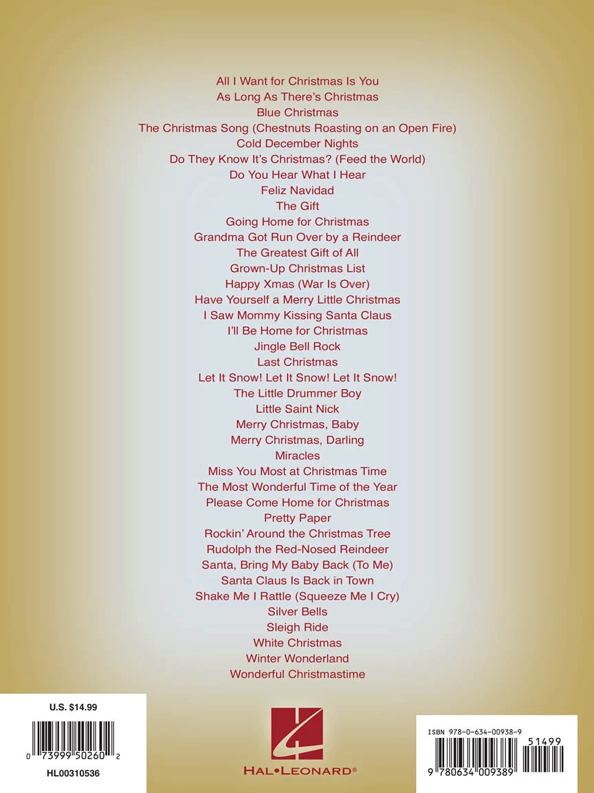 38 classic and contemporary songs of the season: Christmas Is All in theHeart • The Christmas Song • Cold December Nights • Do T hey Know It’s Christmas? • Do You Hear What I Hear • Feliz Navidad • The Gift • I’ll Be Home for Christmas • Jingle-Bell Rock • Miracles • The Most Wonderful Time of the Year •Silver Bells • more.