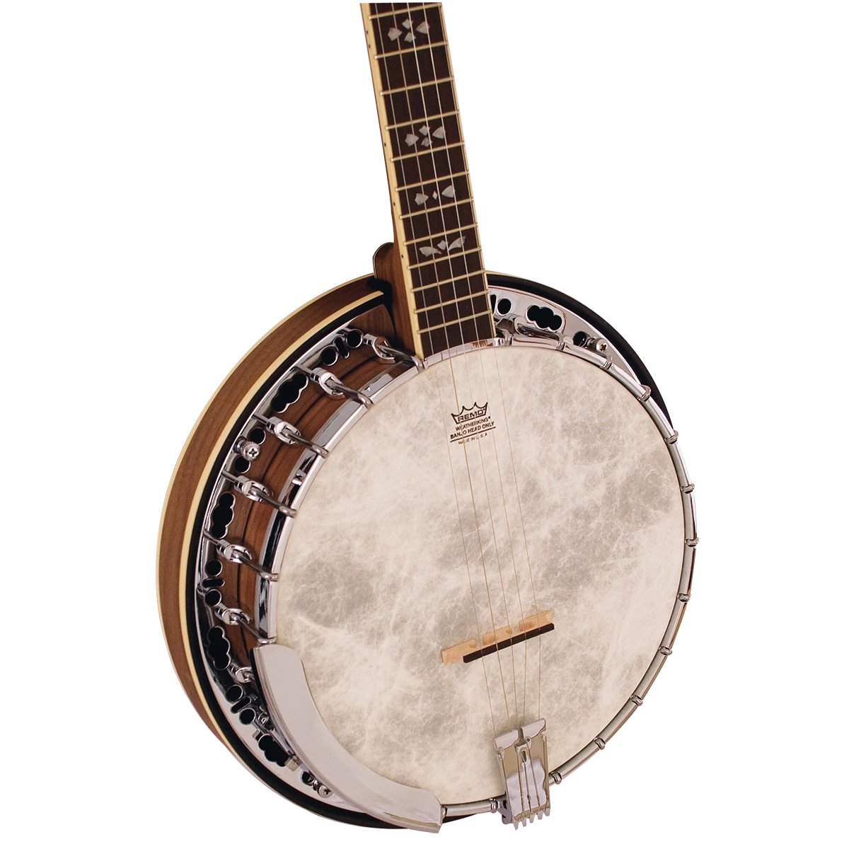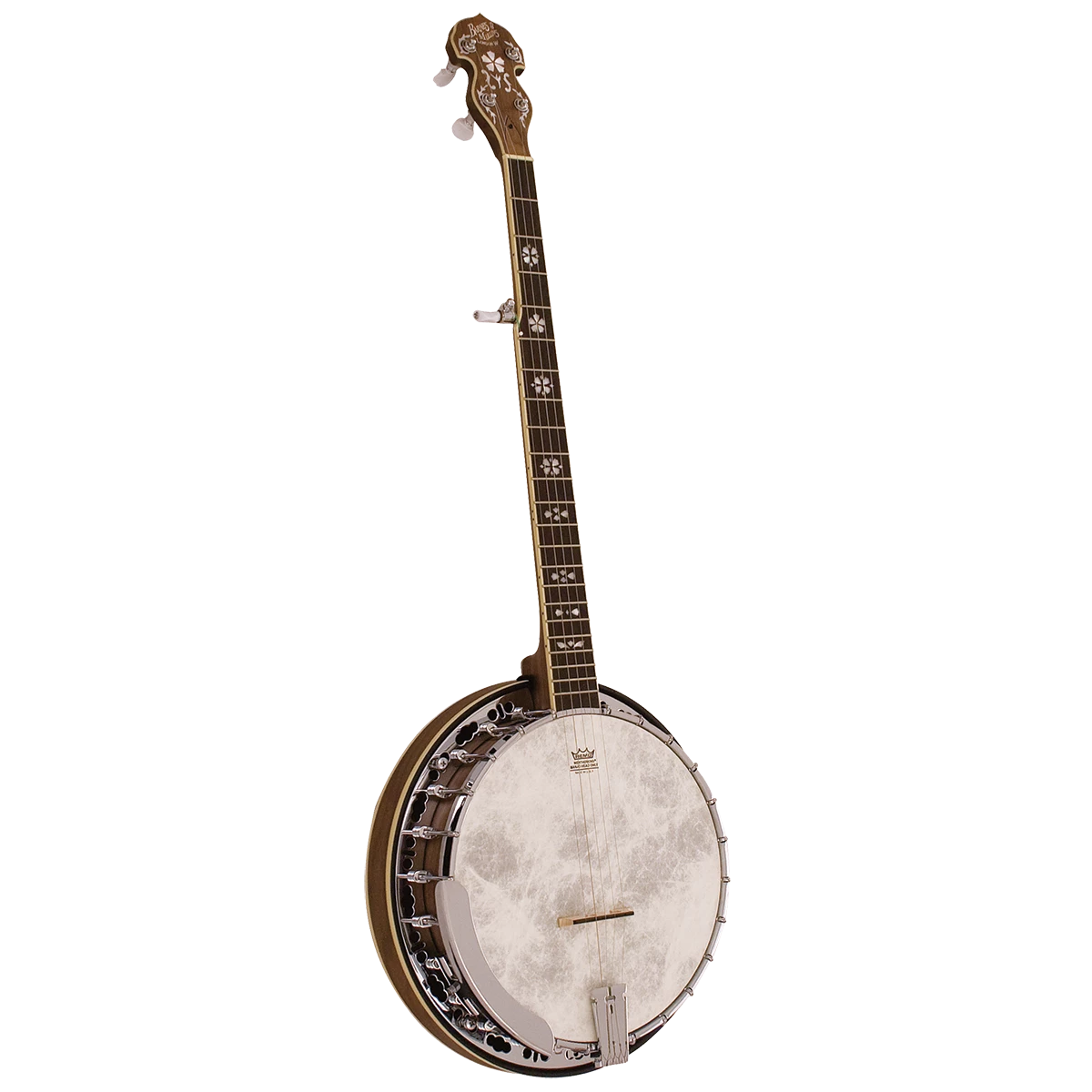 Named after the tragic βEmpress of Irelandβ ocean liner, the Barnes & Mullins BJ500BW βEmpressβ 5 string banjo combines outstanding quality with a unique and striking appearance. A low action and quick neck make this banjo a joy to play. It features aΒ closed back burl walnut resonatorΒ to deliver an authentic, punchy bluegrass tone with a genuine Remo Vellum head. Geared machine heads ensureΒ improved tuning stability. The BJ500BW also features aΒ rolled brass tone ringΒ to improve the volume and projection of the instrument.