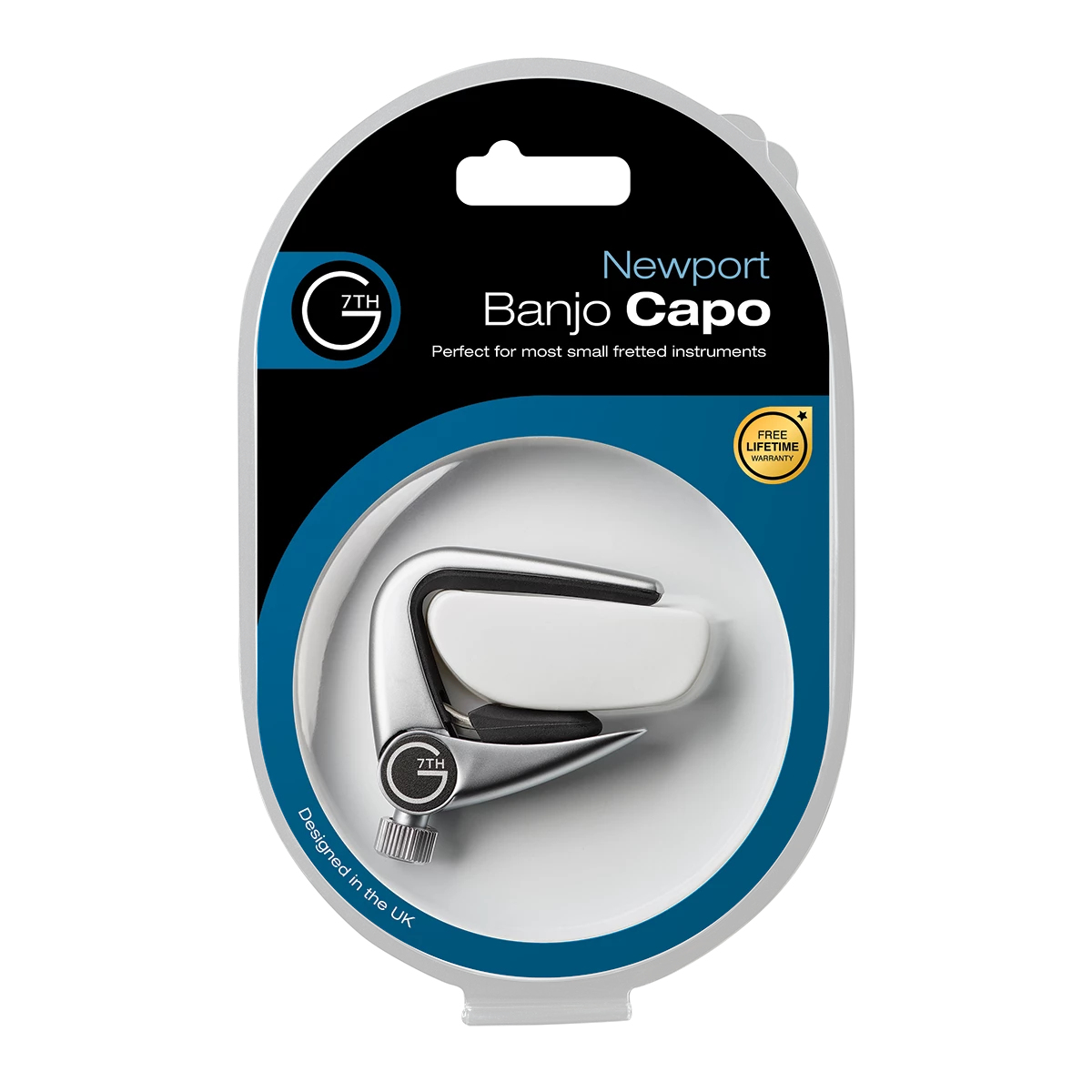 The Newport Banjo capo is specifically designed for modern and traditional banjos and combines traditional flip lever action, With a comfortable low-profile and classic G7th design.