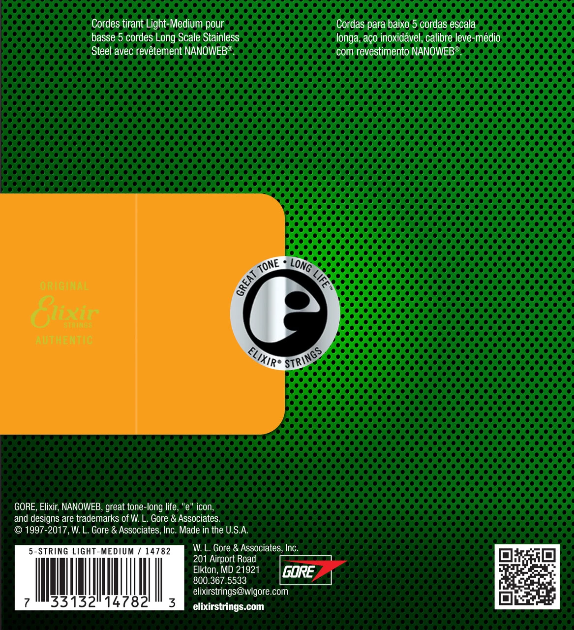 Elixir® Stainless Steel Bass Strings With a NANOWEB Coating provide a bRight stainless tone With deep lows.