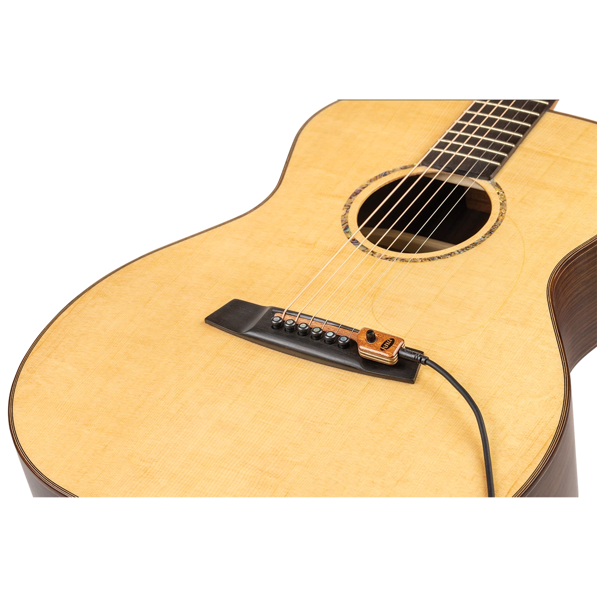 With onboard volume control, SG-2 is a perfect choice in a piezo pickup for guitar. It’s an acoustic guitar bridge pickup that transfers the natural sound of your instrument without requiring modification. Unlike other guitar pickups, SG-2 installs safely and securely between the bridge saddle and pins, held in place by the tension of tuned strings. This steel-string guitar pickup may remain installed when not in use. Two cables are included – plug in directly with the 9-ft. 1/8″ to 1/4″ cable, or use the 3-ft. 1/8″ to female 1/4″ jumper with safety clip to connect with the instrument cable of your choice.