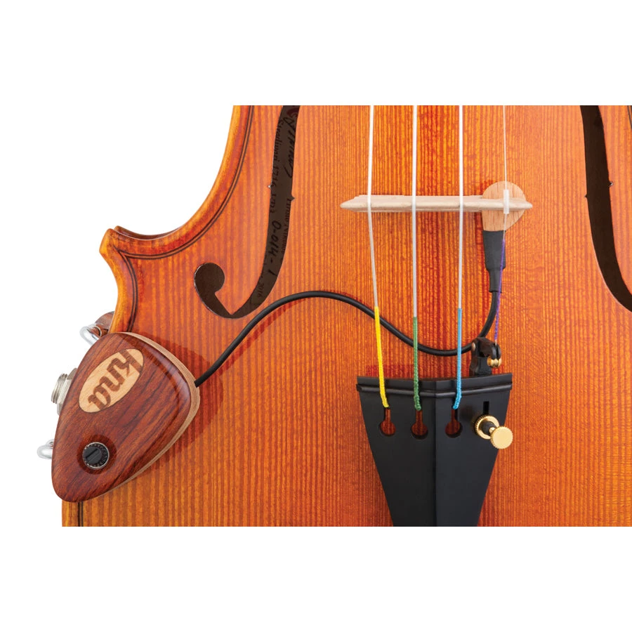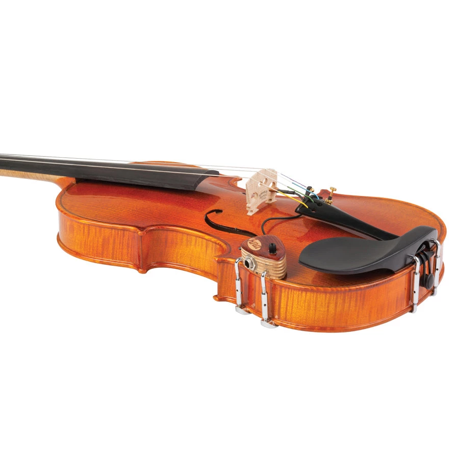VV-2 is perfect for players seeking pure tone and simplicity with the ability to adjust output volume from the stage. A passive piezo sensor installs at the bridge. A potentiometer is built into the jack housing, which mounts safely to the instrument via cork-lined, fully adjustable barrel clamps.Â