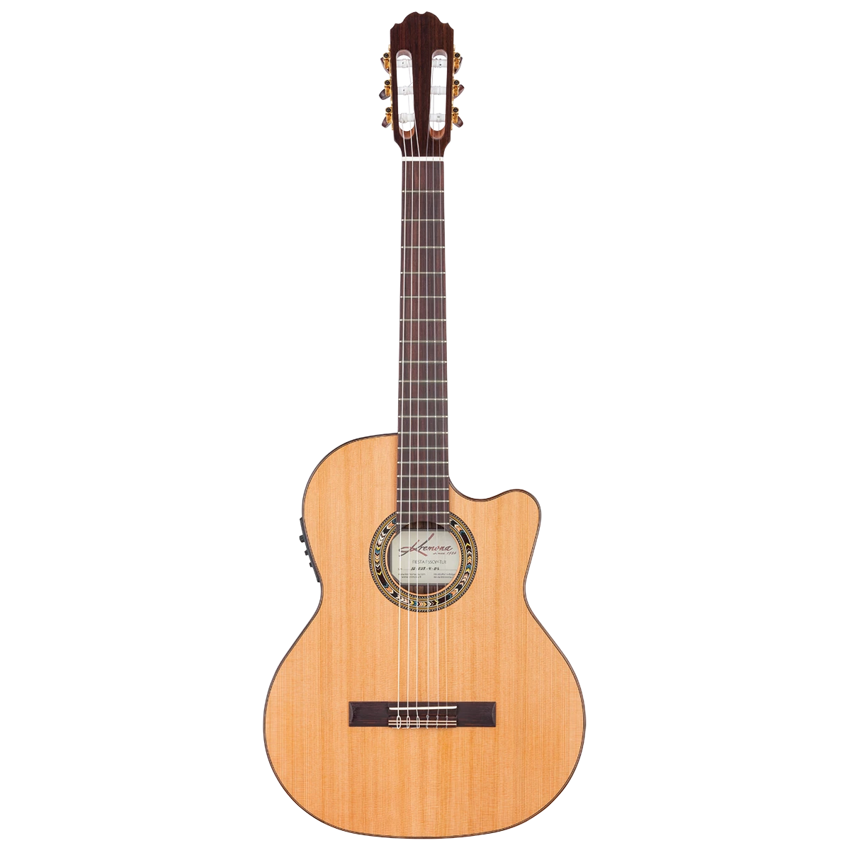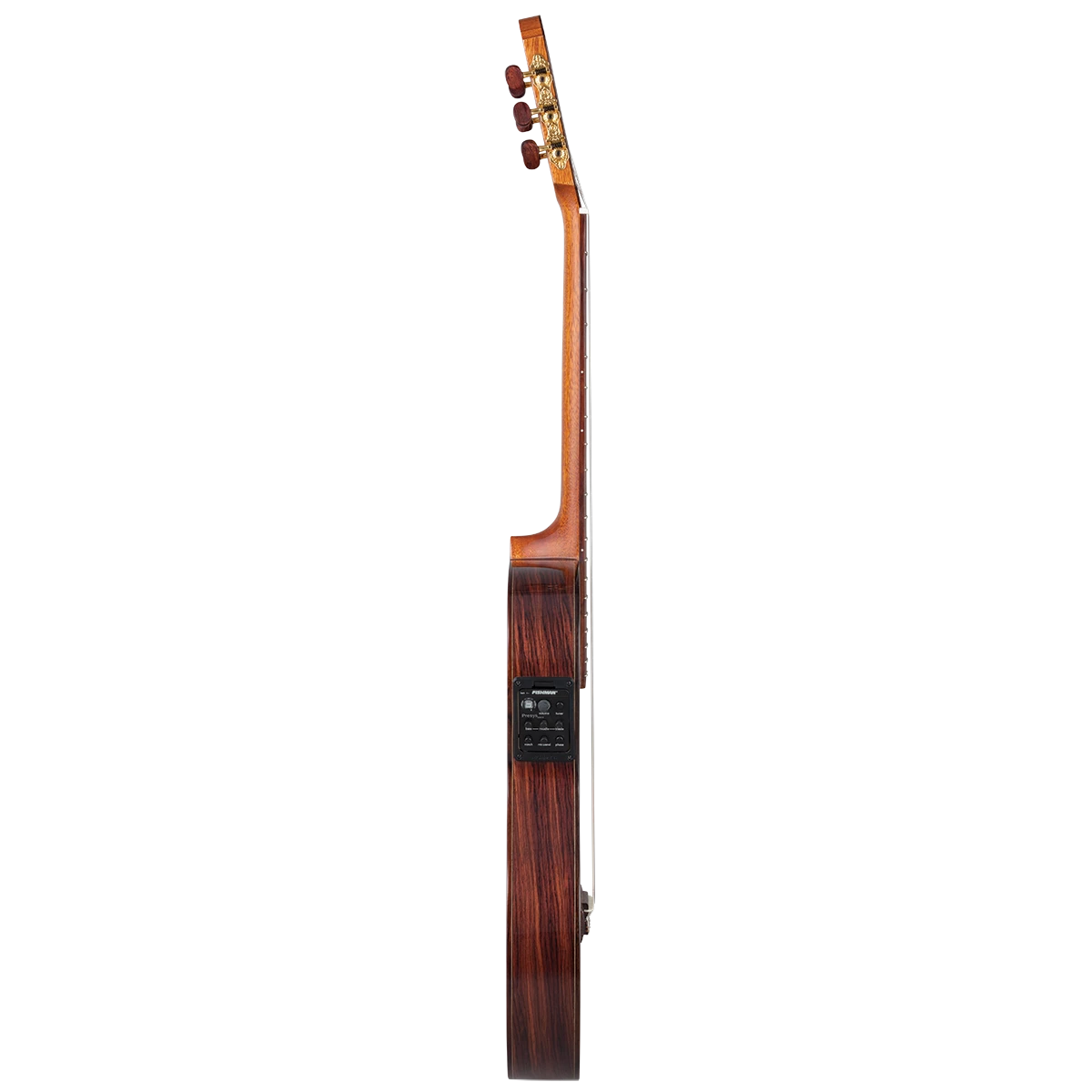With an inviting venetian cutaway and versatile Fishman Presys Pro Blend system, the sound comes through the warm Rosewood / Cedar wood pairing with clarity and class.