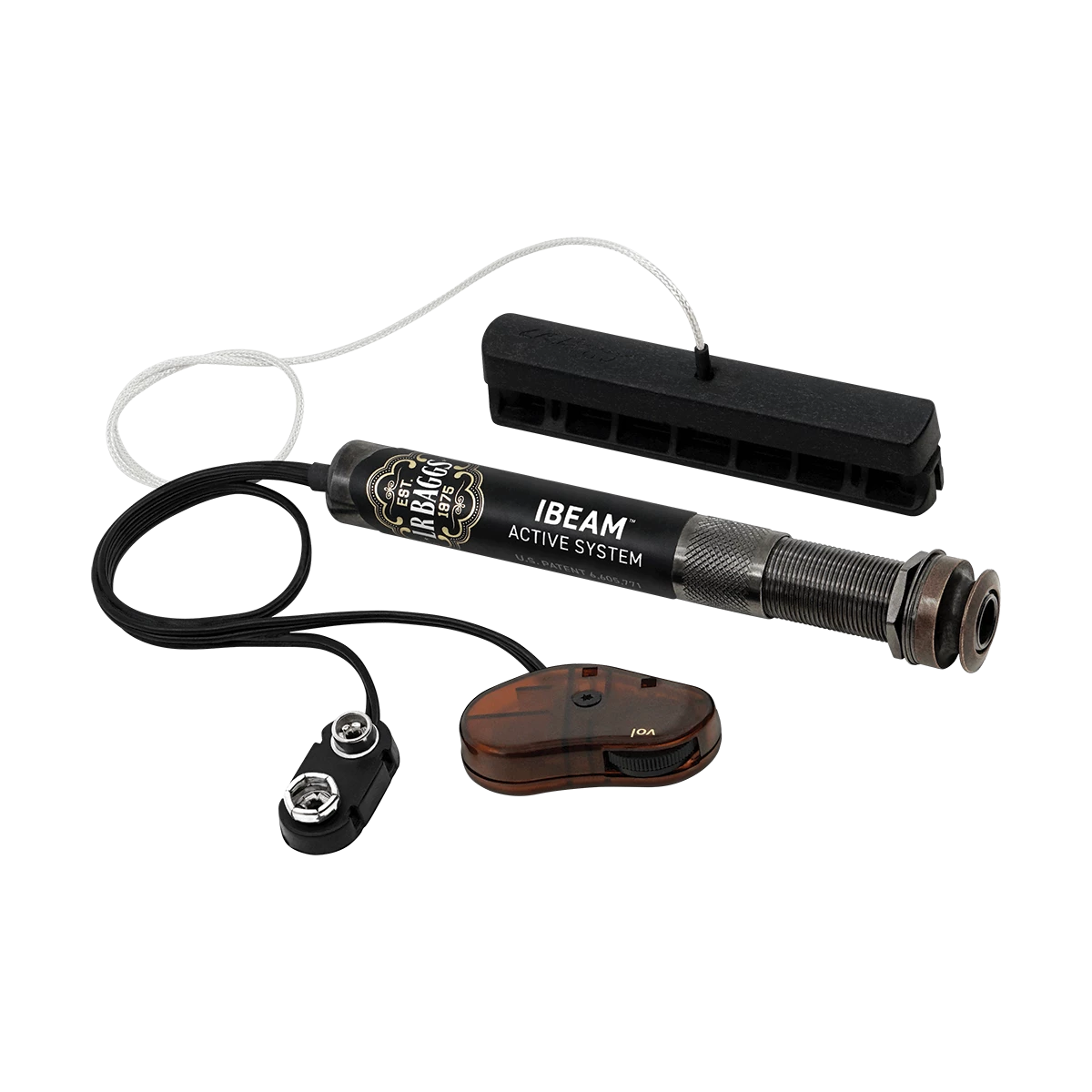 The iBeam Active pairs the iBeam With an all-discrete Class A endpin preamp With soundhole volume control. The sweet and ultra-quiet audiophile-grade preamp faithfully amplifies every nuance of the pickup. Superior sound and performance is built in for easy plug-and-play performance. An auxiliary passive channel is also available for adding a secondary pickup.