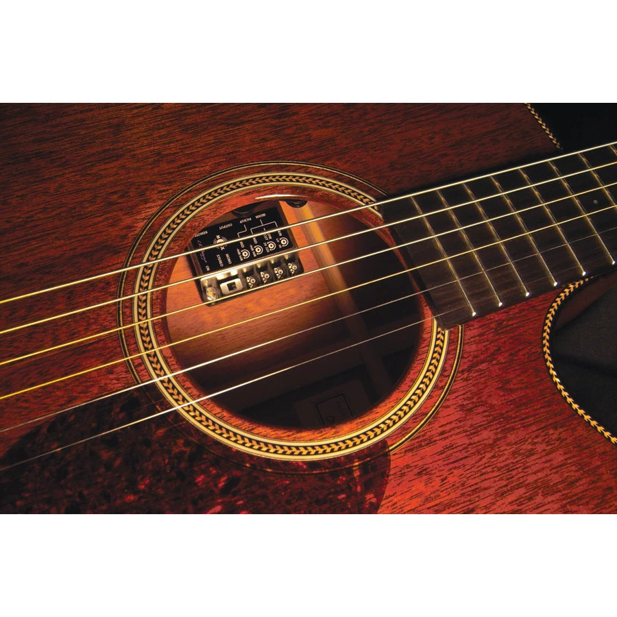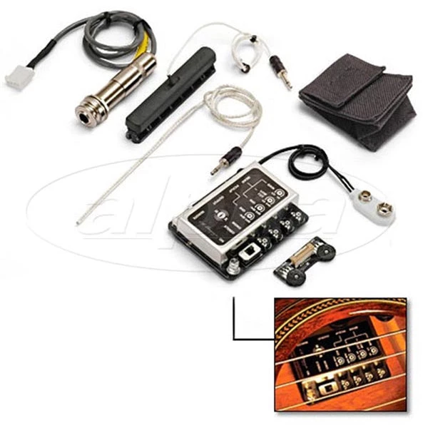 Internal soundhole mixing preamp combining element & ibeam active systems. All-discrete class A circuitry. Switchable mono mix or stereo modes. Tunable mid contours for iBeam and Element. Variable iBeam low cut for optimal bass response. Natural string-to-string balance and dynamics. Battery Bagg battery placement.