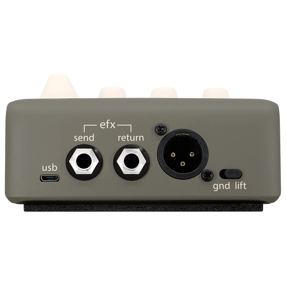 Mute footswitch for ¼” and XLR outs. Long press for bypass