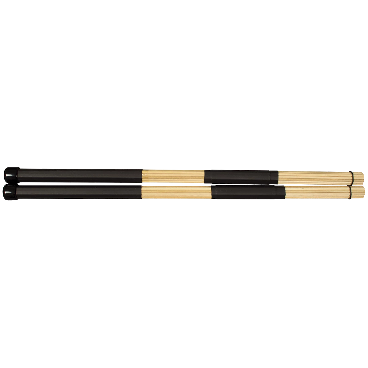Drumstick rods made from Bamboo, ideal for drumming that requires reduced volume. Perfect for cutting through at a lower volume than standard drumsticks but louder than brushes. Smooth comfort grip.