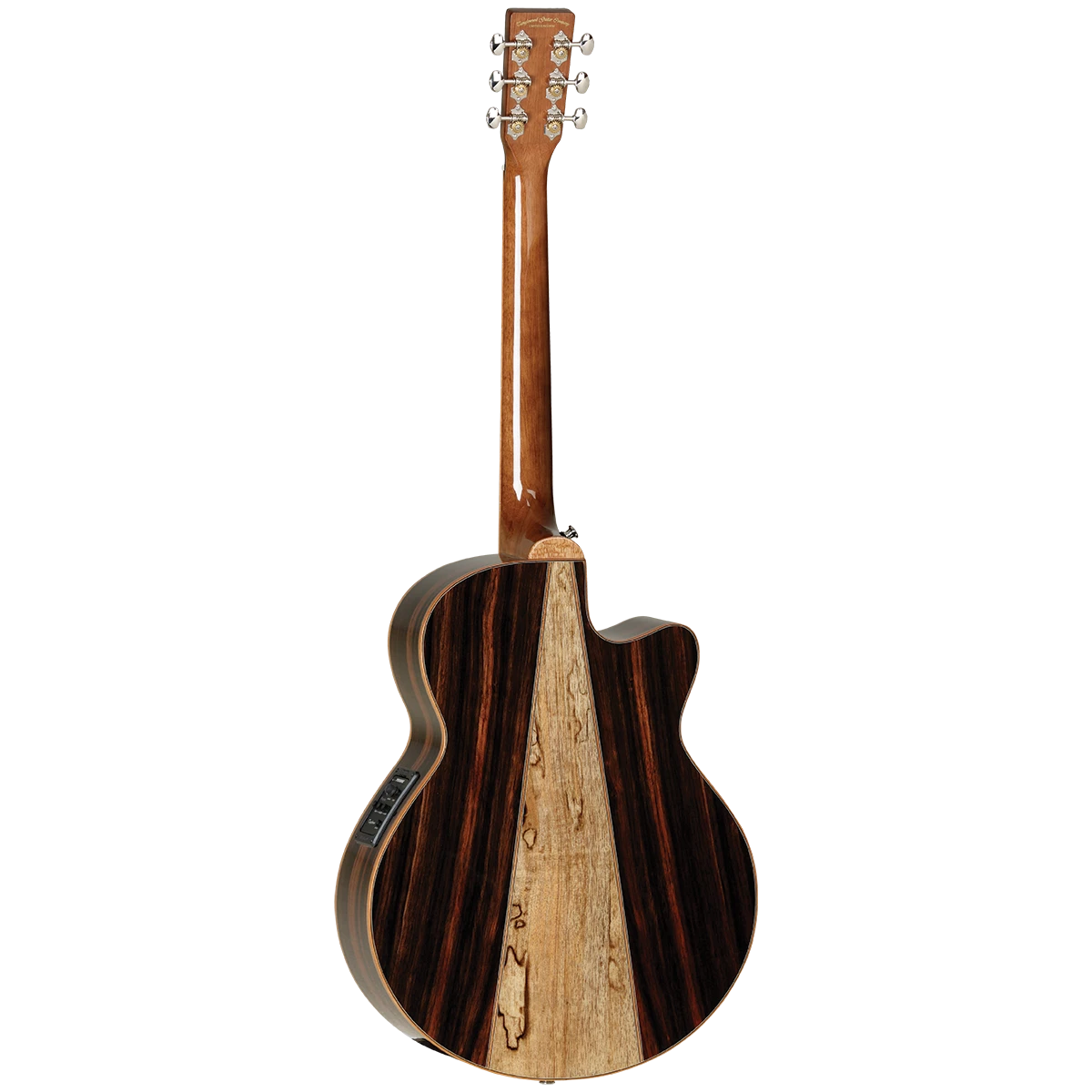 Inspired by Italian marquetry techniques, the Java guitars have an Amara Ebony back and sides with a contrasting strip of Spalted Mango timber defining the back of the instrument and making the Java series really stand out from the crowd.