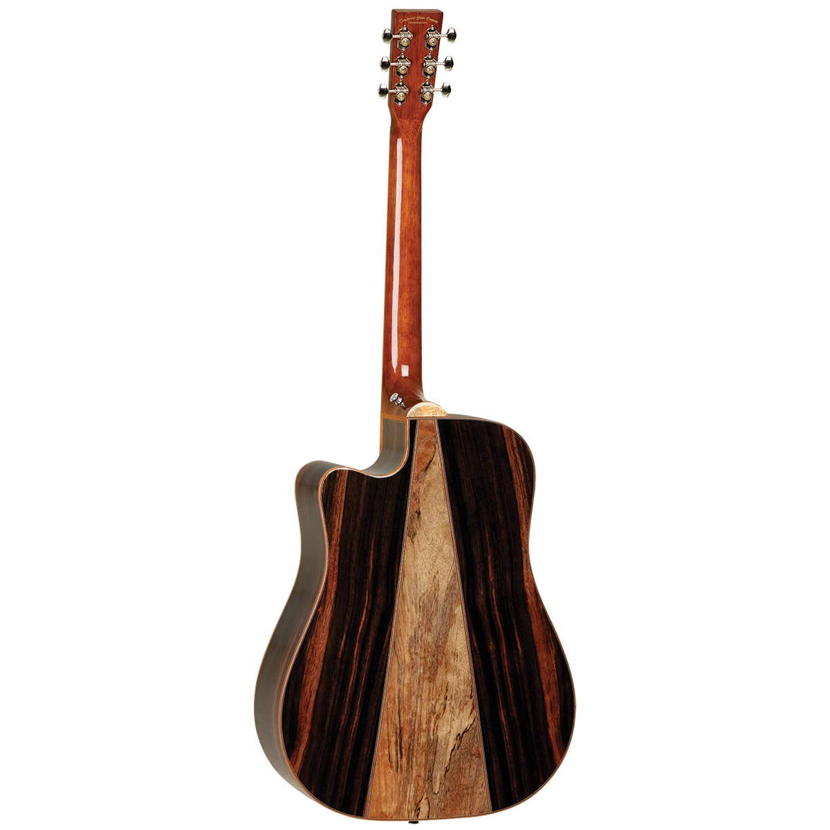 Inspired by Italian marquetry techniques, the Java guitars have an Amara Ebony back and sides with a contrasting strip of Spalted Mango timber defining the back of the instrument and making the Java series really stand out from the crowd.