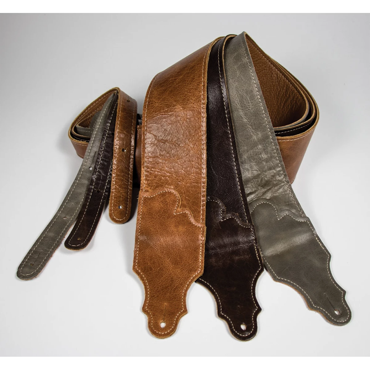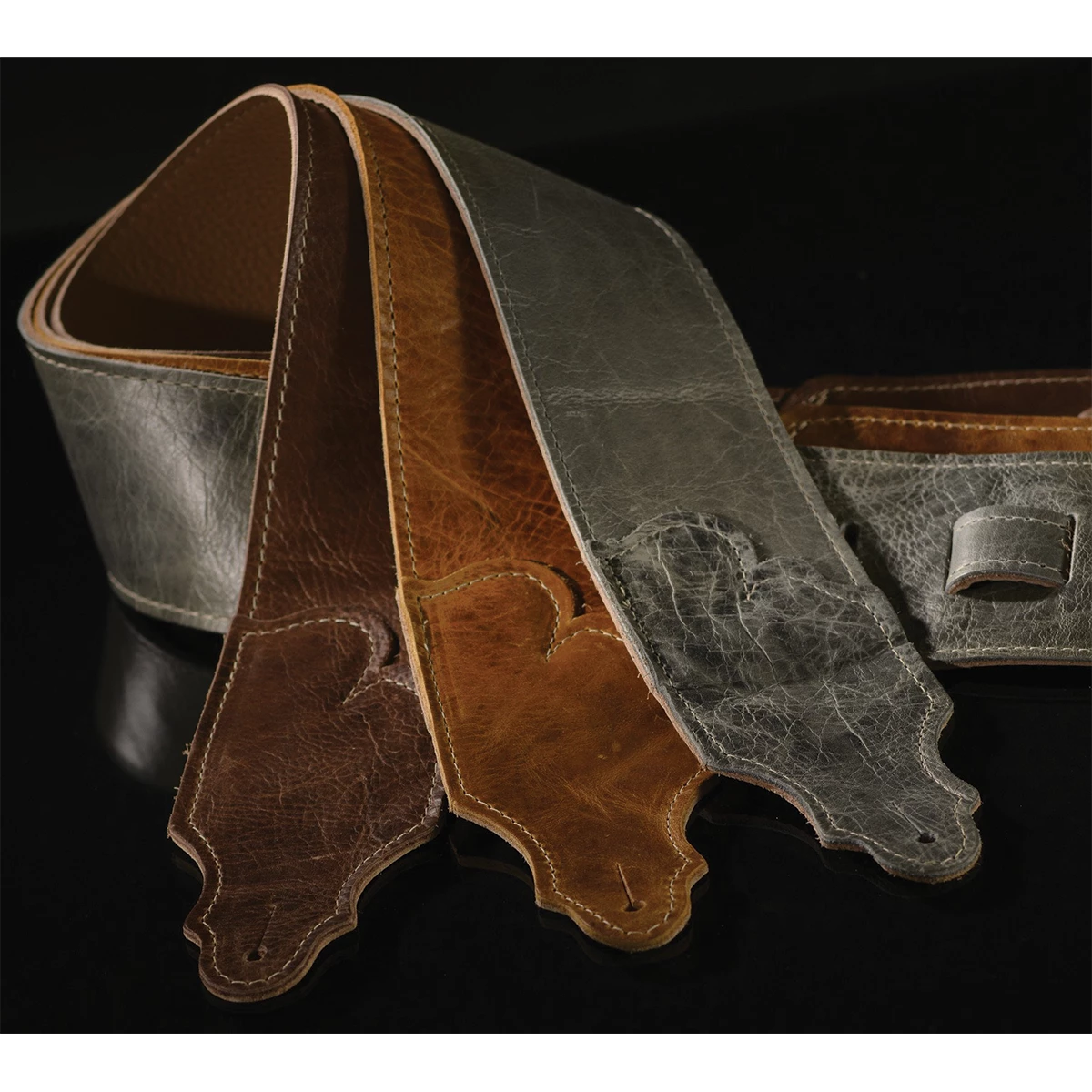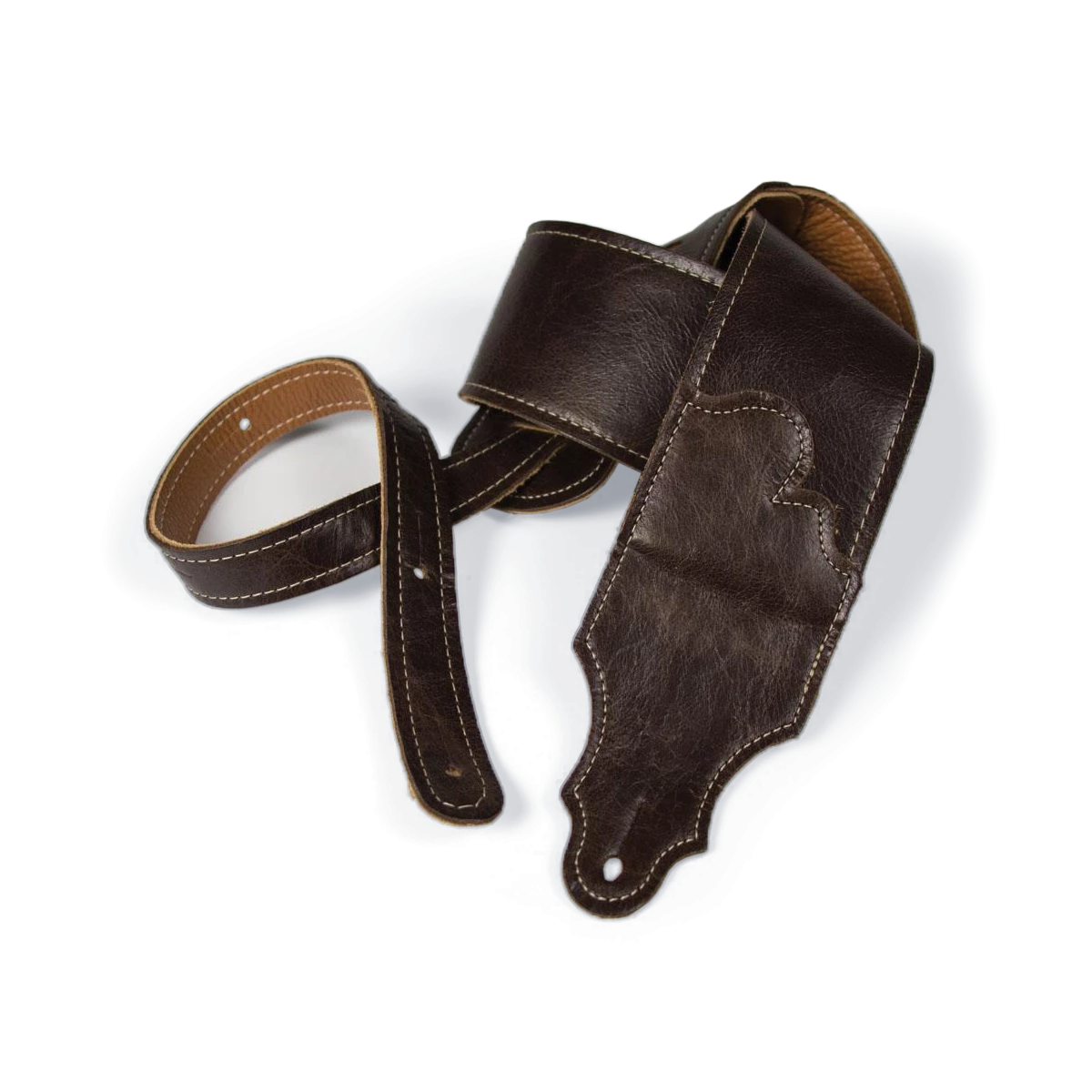 This slightly distressed strap has a time- worn look that is in the nature of the leather rather than a process. It appears to have been well -used and loved for years; more like a cherished leather wingback chair than an old pair of shoes. The Jackson Hole series leather is one of the most interesting leathers we have ever sourced. Built like our Original Series glove leather, instead of suede backing, we line the strap with a lush garment leather that not only feels soft, but lets your guitar slide freely on your shoulder.