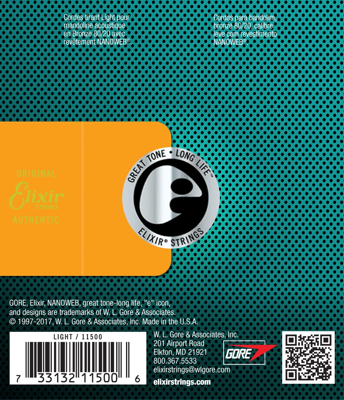 Elixir® Strings 80/20 Bronze-wound, loop-end mandolin strings raise the bar With bell-like tone, smooth feel and extended tone life. Elixir Strings players report their tone lasts Longer than any other string, uncoated or coated. With less hassle and expense of frequent string changes you enjoy more time making music.