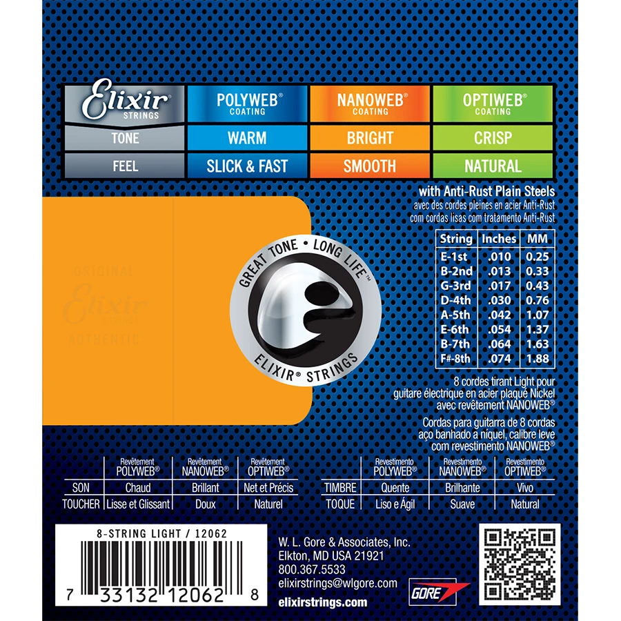 Elixir® Electric Nickel Plated Steel Strings With NANOWEB Coating deliver the presence, punch, and personality of traditional electric guitar strings but With extended tone life.