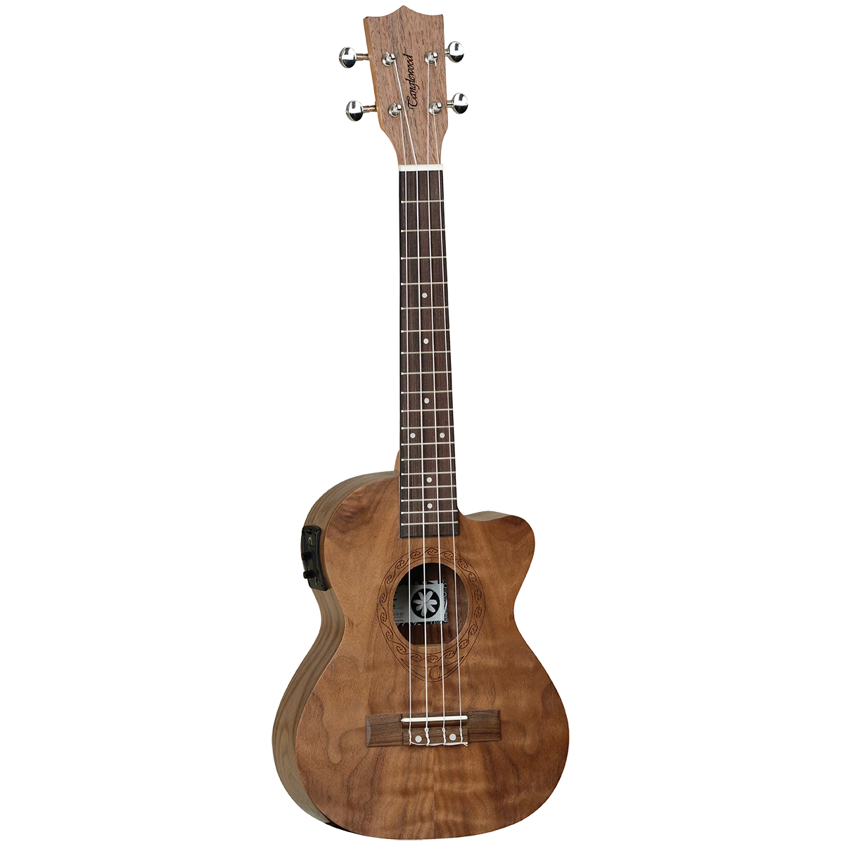 Our biggest design feature is the Tiare arched backs, for a truely authentic ukulele. The range covers a multitude of deluxe timbers including Flame Mahogany, Black Walnut, Spruce, Koa, Spalt Maple, Cedar, Figured Ovangkol & Figured Pacific Walnut, to name a few. Other features include Supernylgut Aquila strings, laser etched & abalone rosettes and premium gloss & satin finishes.