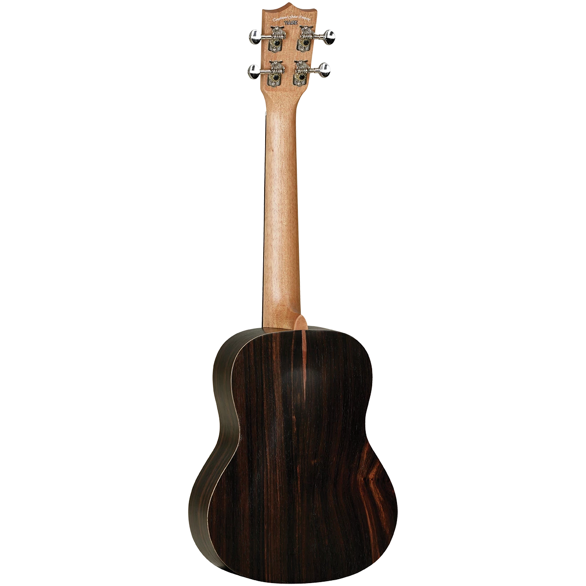 Our biggest design feature is the Tiare arched backs, for a truely authentic ukulele. The range covers a multitude of deluxe timbers including Flame Mahogany, Black Walnut, Spruce, Koa, Spalt Maple, Cedar, Figured Ovangkol & Figured Pacific Walnut, to name a few. Other features include Supernylgut Aquila strings, laser etched & abalone rosettes and premium gloss & satin finishes.