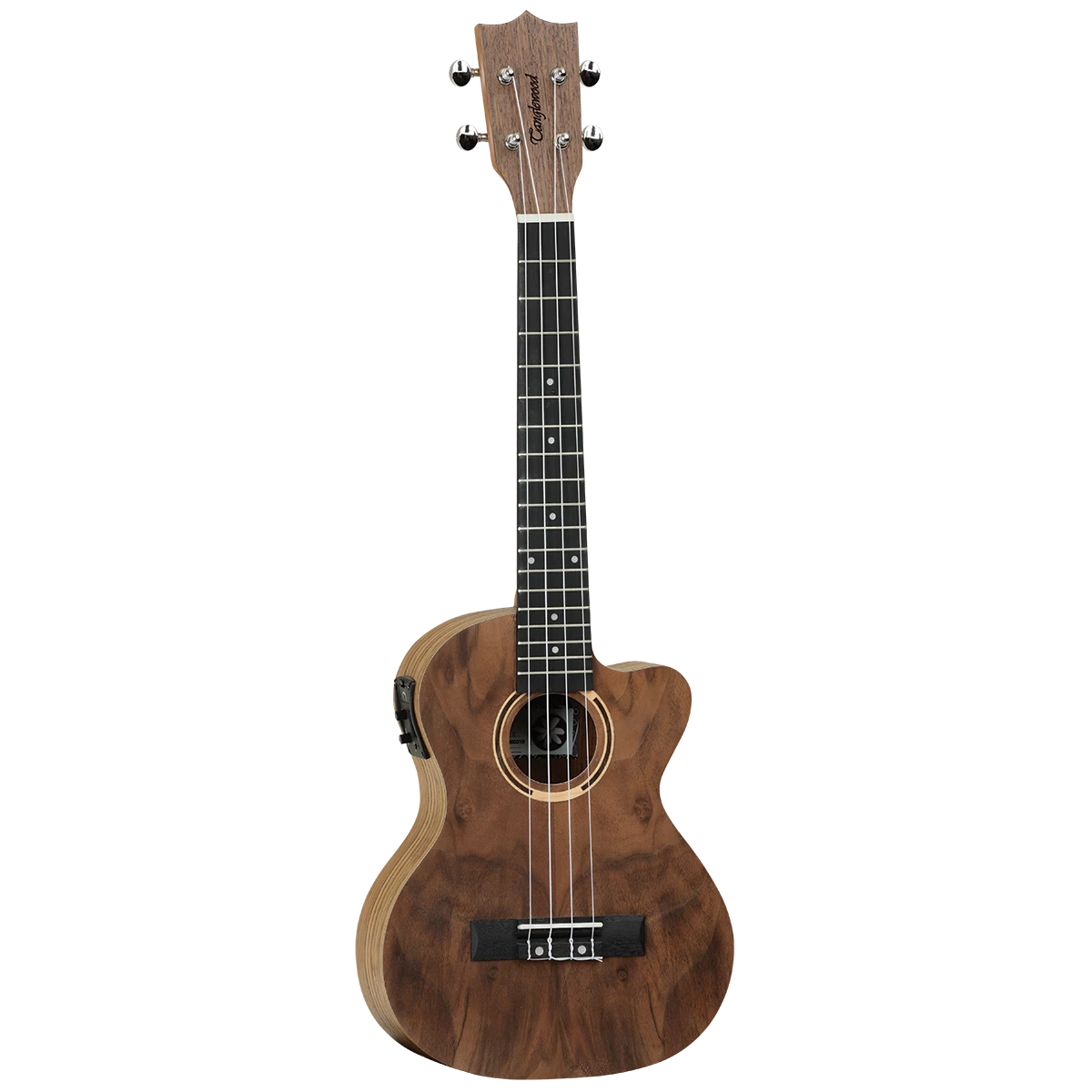 Our biggest design feature is the Tiare arched backs, for a truely authentic ukulele. The range covers a multitude of deluxe timbers including Flame Mahogany, Black Walnut, Spruce, Koa, Spalt Maple, Cedar, Figured Ovangkol & Figured Pacific Walnut, to name a few. Other features include Supernylgut Aquila strings, laser etched & abalone rosettes and premium gloss & satin finishes.