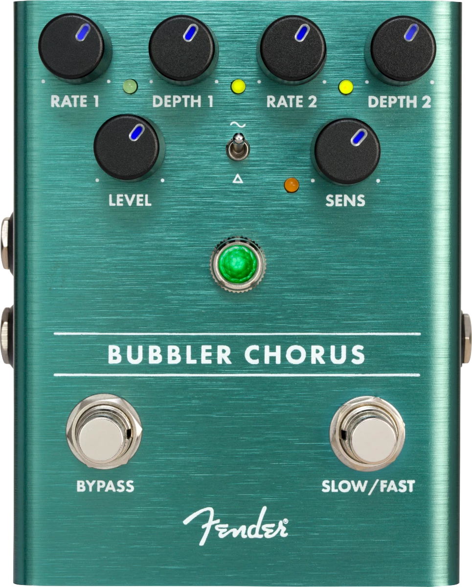 Designed by our in-house team of experts, the Bubbler Chorus is an all-original Fender circuit. To ensure this pedal is performance-ready we let musicians kick it around, took their feedback to heart and refined it. The chassis is crafted from lightweight, durable anodized aluminum, and the Amp Jewel LED gives your pedalboard the classic Fender look. The LED-backlit knobs show your control settings on a dark stage at a glance.