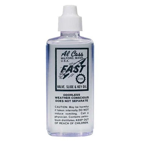 The famous Al Cass “Fast” is a combination valve, slide, and key lubricant that will not gum or separate under any weather conditions. Al Cass Fast Oil has been an enduring favourite of brass players for decades. It is a combination valve, slide and key oil designed for long-lasting lubrication and is a petroleum-based oil available in a 2 oz. bottle.