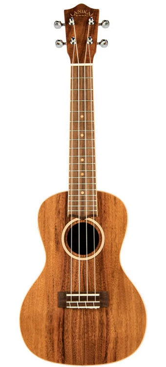 The Acacia Solid Top ukulele by Lanikai delivers dynamic new features such as a wider nut for player comfort, select figured woods, open back tuners, wood marquetry, NuBone XB® nut and saddle, D’Addario® strings, cutaway models with Fishman® Kula preamp, satin finish and a padded gig bag.