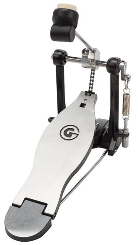 Single Chain Drive Single Bass Drum Pedal. Clean and simple with quick response. Fast touch “G” style pedal board design and dual surface balanced bass drum beater.