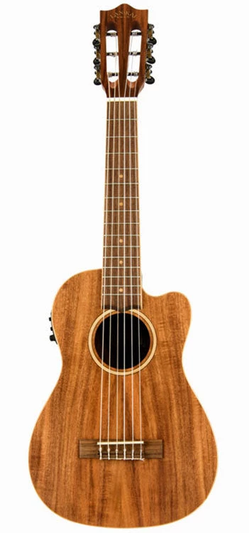 The Acacia Solid Top ukulele by Lanikai delivers dynamic new features such as a wider nut for player comfort, select figured woods, open back tuners, wood marquetry, NuBone XB® nut and saddle, D’Addario® strings, cutaway models with Fishman® Kula preamp, satin finish and a padded gig bag.
