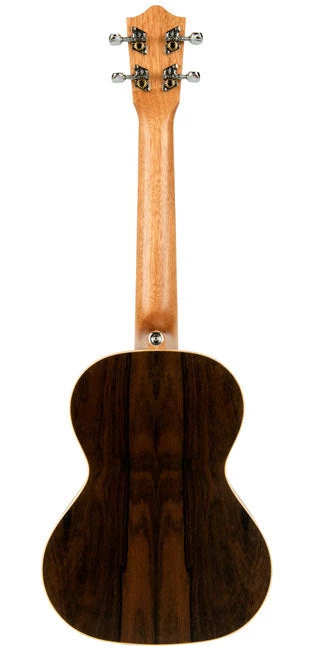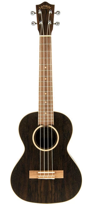 The Ziricote ukulele by Lanikai delivers dynamic new features such as a wider nut for player comfort, select figured wood, open back tuners, wood marquetry, NuBone XB® nut and saddle, D’Addario® strings, satin finish and a padded gig bag.