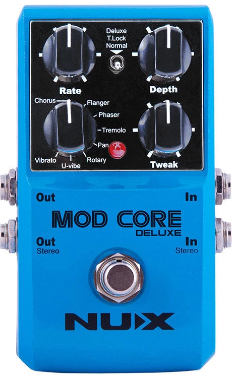 Mod Core Deluxe is a fully-featured pro-quality modulation effects pedal. Add-in Rate and Depth controls to adjust main parameters and Tweak control to manipulate key parameters for each effect, and you get more tone-shaping options than you’ll ever find in a modulation pedal. It has 8 modulation effects with 2 types of algorithms fitting every musician’s needs for sound improvement and colorization.
