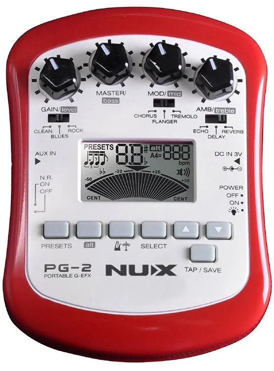 The NU-X PG-2 is a portable guitar effect unit which can fit in your pocket and runs with batteries. Itβs a small size and simple-interface designed unit but it provides a variety of guitar sounds and deep tone controls. PG-2 offers many different musical sounds from pop to blues, rock to metal, you can find everything you need in this pocket-size effect unit. Plug it into your electric guitar and headphones, then you have a personal practicing room anytime, anywhere.