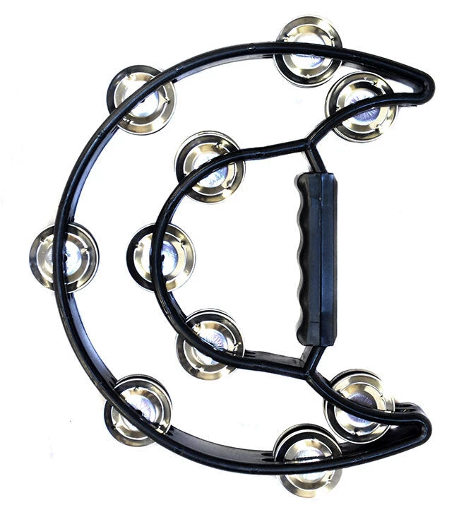 This Percussion Plus hand percussion sound effect is a PVC shell half moon tambourine in black and has 10-Double rows of jingles. Enjoy making beautiful music with Percussion Plus.