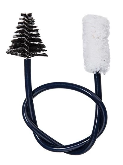 Flexible coiled wire with bristle brushes coated in vinyl plastic to protect your instrument.