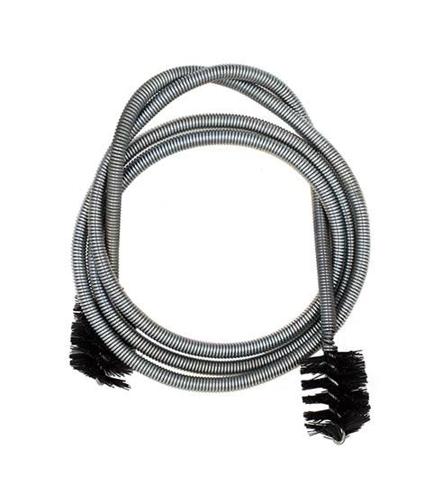 Flexible coiled wire with bristle brushes coated in vinyl plastic to protect your instrument.