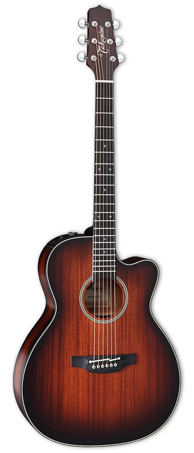 With a punchy mid-range that’s often associated with acoustic blues or roots music, the TCP771MCSB is a solid “American” Mahogany guitar with a striking Satin Shadow Burst finish. Takamine’s legendary CTP3 CoolTube electronics ensure that the guitar’s natural voice translates to the stage.