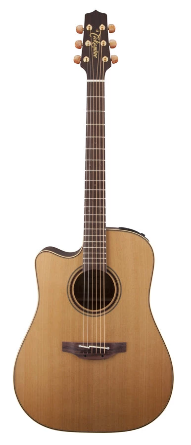 The solid cedar top features hand-scalloped X bracing and ivory binding, with dark purfling and a gorgeous concentric-ring rosette with wood marquetry. An elegant Venetian cutaway offers optimum access to the upper registers. The unique Takamine split bone saddle bridge provides faultless intonation and excellent acoustic coupling to the top.