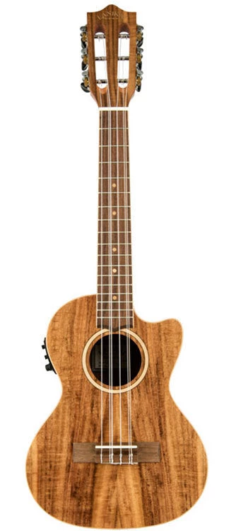 The Acacia Solid Top ukulele by Lanikai delivers dynamic new features such as a wider nut for player comfort, select figured woods, open back tuners, wood marquetry, NuBone XB® nut and saddle, D’Addario® strings, cutaway models with Fishman® Kula preamp, satin finish and a padded gig bag.