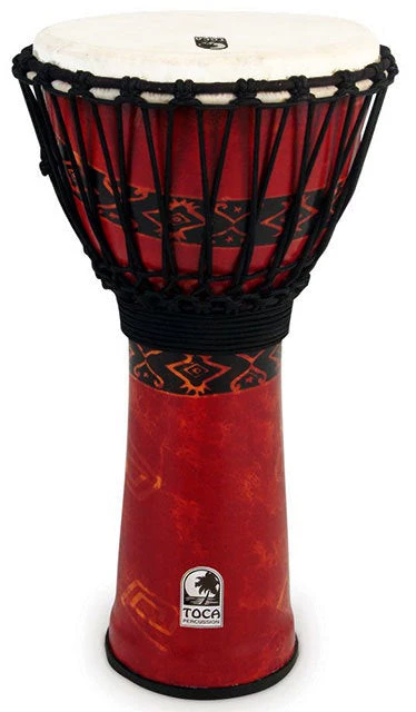 The new heads eliminate the stretching, drying, and loss of pitch that can occur with natural skin heads due to changes in weather conditions. Thus they offer greater consistency in sound. Synthetic heads can also be tensioned over a wider range, making them able to produce higher, crisper slaps and deeper bass tones. Freestyle II Rope Djembes have also been improved with an increased number of rope runners that allow for improved tuning.