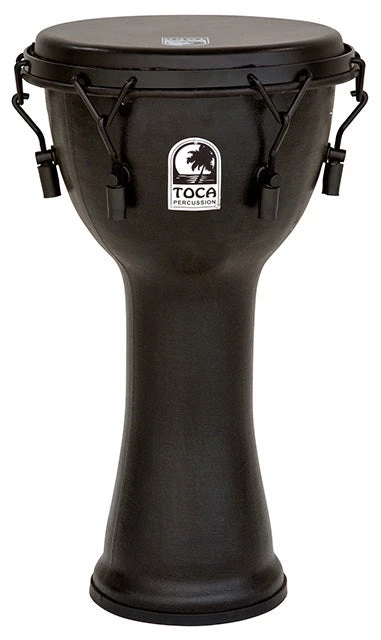 Lightweight and durable seamless synthetic shell that sounds great and travels well. The djembe’s low mass tuning system allows fast, accurate tuning that stays in place. Protective rubber bottom and tips on tuning lugs protect your floor’s finish. The drum’s black finish with black hardware gives a striking look to go with its dynamic sounds, including a synthetic head finished in black dye.