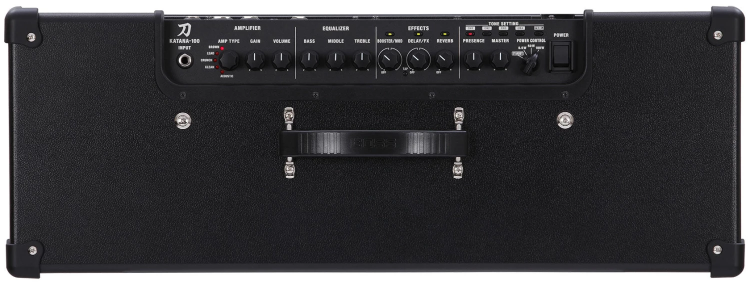 Sharpened to perfection by the BOSS engineering team, the Katana-100/212’s five amp characters offer everything from organic vintage tones to modern high-gain sounds. Clean is natural and transparent, while Crunch offers satisfying grit and response. Lead has a wide gain range to suit many styles, from fat, stinging blues solos to fluid legato shredding. With DNA inherited from the Waza amp, Brown delivers refined high-gain tone sought after by the world’s greatest rock players. The Acoustic character further enhances the Katana’s versatility, providing optimized tone that makes acoustic-electric guitars sound stunningly natural.