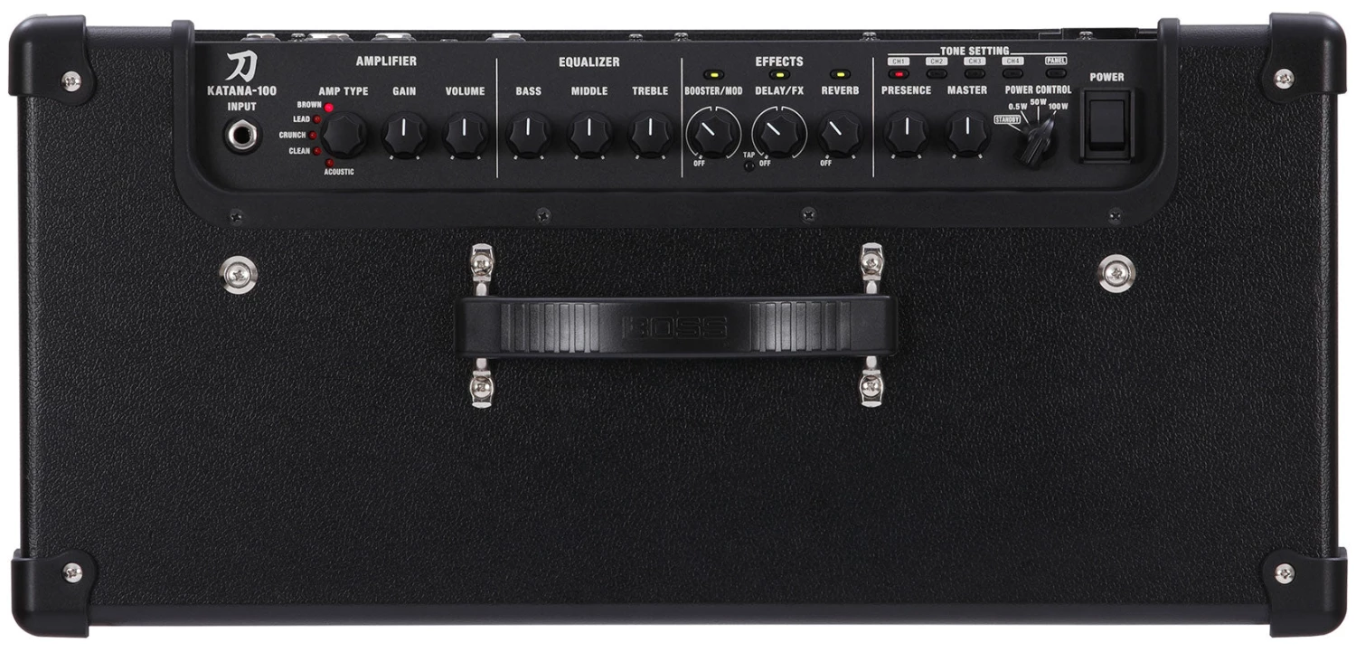 Sharpened to perfection by the BOSS engineering team, the Katana-100’s five amp characters offer everything from organic vintage tones to modern high-gain sounds. Clean is natural and transparent, while Crunch offers satisfying grit and response. Lead has a wide gain range to suit many styles, from fat, stinging blues solos to fluid legato shredding. With DNA inherited from the Waza amp, Brown delivers refined high-gain tone sought after by the world’s greatest rock players. The Acoustic character further enhances the Katana’s versatility, providing optimized tone that makes acoustic-electric guitars sound stunningly natural.