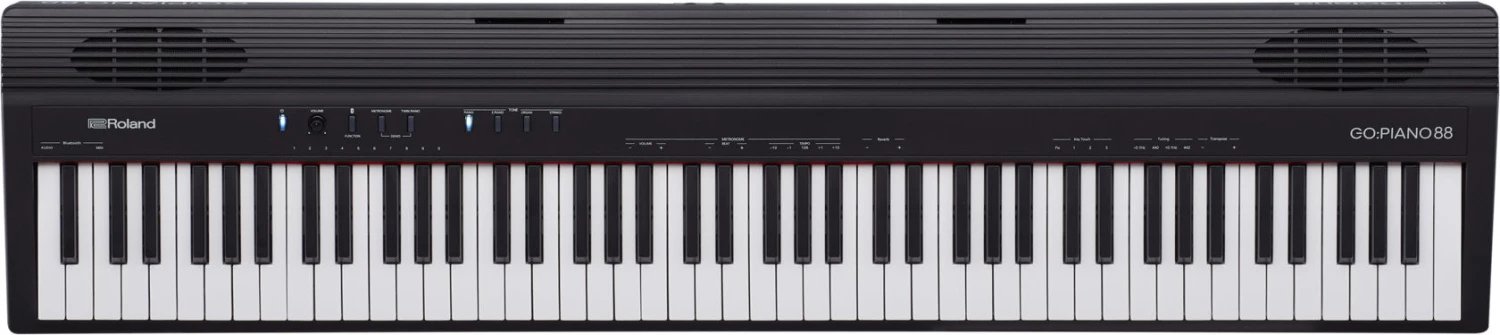 When you’re learning to play the piano, having 88 keys makes a big difference. Although smaller 61 or 76-note keyboards are portable and easy to handle for younger players, an 88-note full-size keyboard helps you develop the correct technique and become a more expressive player. Most keyboards make you choose between performance and portability, but Roland’s GO:PIANO88 delivers equally on both fronts. Lightweight and road-ready, with optional battery power and headphones, this mobile instrument has a full-size 88-note keyboard and sounds derived from Roland’s best digital pianos, so you can play with the correct technique and expression – vital for classical music or more complex pieces. GO:PIANO88 also features high-quality onboard Bluetooth® speakers that hook up to your smartphone to create a simple and compact learning solution. Once connected, you can start exploring free online content that makes learning faster and more fun – including online piano lessons, karaoke and tutorial videos for your favorite songs – or just stream your playlists and jam along. Find a space, grab your smartphone, and start your musical journey with GO:PIANO88.